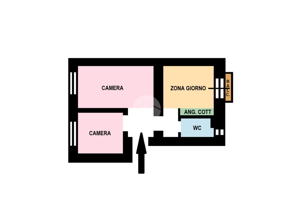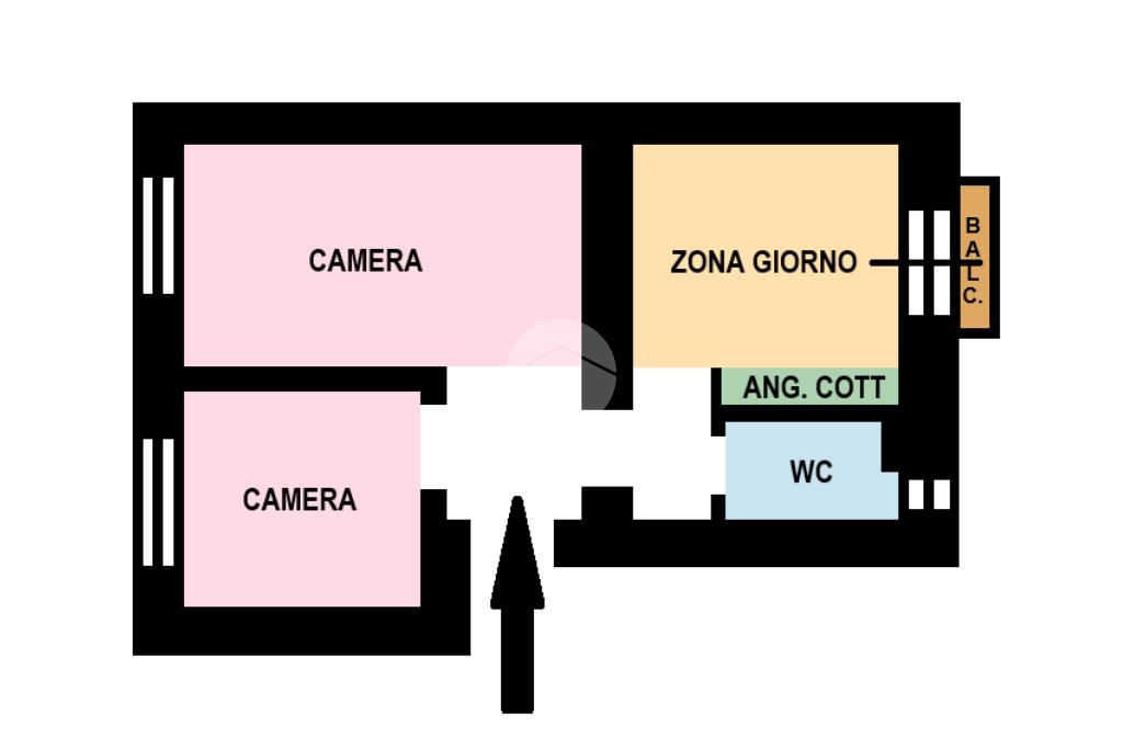 La soluzione, sita al 5° ed ultimo piano di uno stabile dotato di ascensore, è così composta: ingresso, LUMINOSA zona giorno con angolo cottura, camera da letto matrimoniale, cameretta e servizio finestrato; completa la proprietà un esclusivo BALCONE con affaccio aperto.