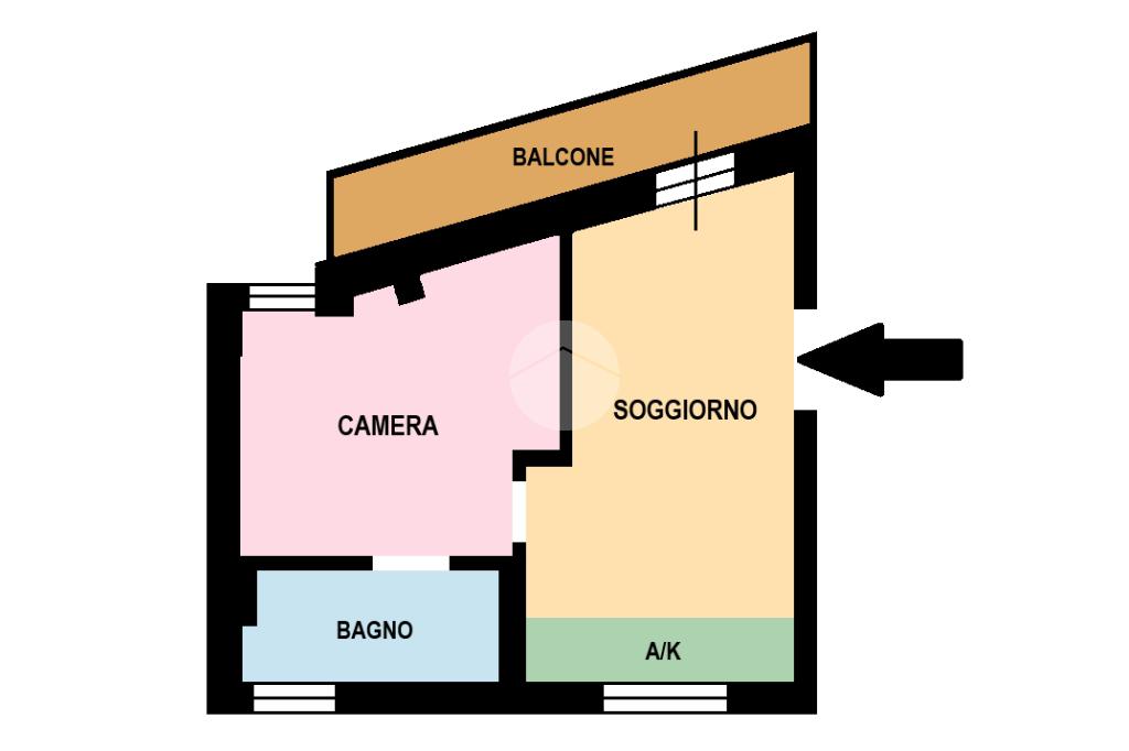 Composta da: ingresso, soggiorno con angolo cottura, camera da letto matrimoniale e servizio finestrato dotato di doccia, la soluzione vanta un ESCLUSIVO BALCONE.