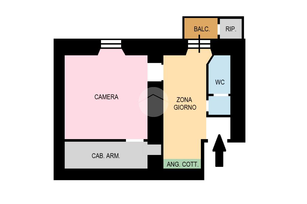 L'immobile, sito all'interno di uno stabile con possibilità di uso dell'ascensore, è così composto: ingresso, soggiorno con funzionale angolo cottura, camera da letto matrimoniale dotata di esclusiva cabina armadio e servizio; completa la proprietà un balcone con affaccio silenzioso.